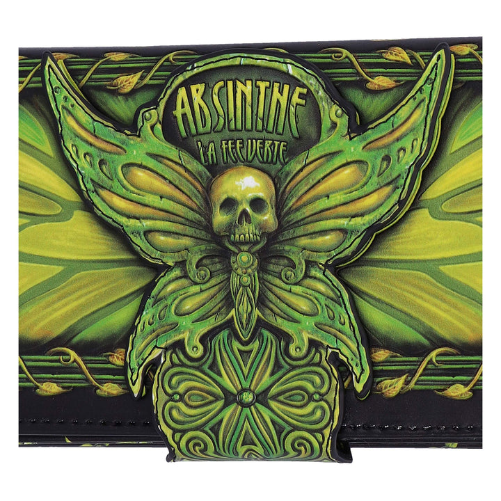 From the untamed imagination of Nemesis Now's in-house design team, this embossed purse was created by Nemesis Now. Based on the green Fairy of legend, the spirit of absinthe is embodied in this intricately designed purse. Emblazoned on the front is 'Absinthe, la fée verte' when translated states 'Absinthe, the green Fairy' synonymous with Parisian and Bohemian culture. Beneath the Sigil is the skull of the emerald coloured Fairy spirit which forms the purses securing flap. The beautiful embossed detailing enhances the magic and creates a striking 3D effect while the large compartments make it a wonderfully practical piece.