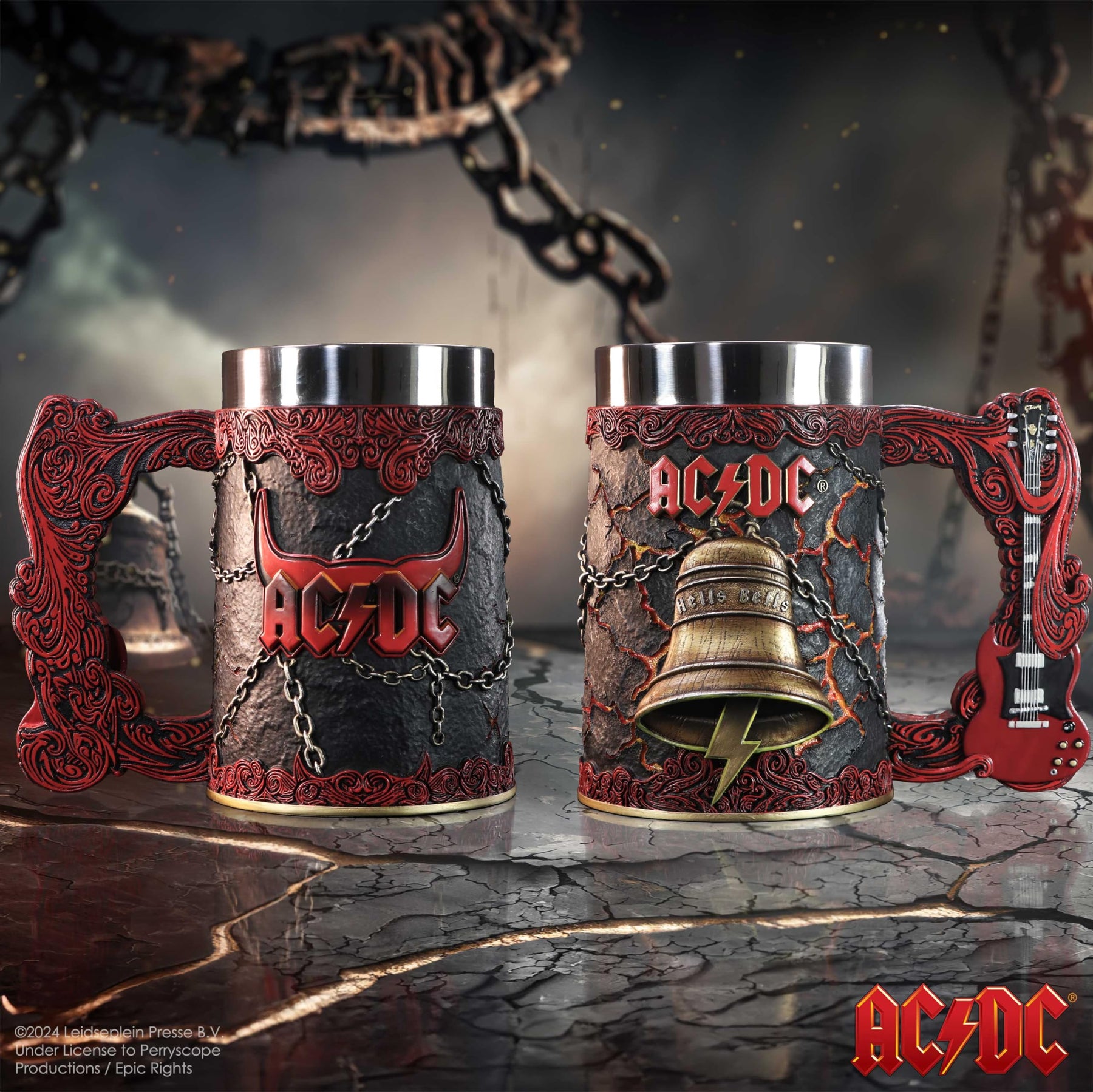 Crafted with meticulous attention to detail is this Officially Licensed AC/DC Hells Bells Tankard. The design featuring the Hells Bells emblem, chains, and a lava like base, along with a guitar shaped handle captures the essence of AC/DC's electrifying energy. Cast in the finest resin before being expertly hand-painted, this Tankard is a symbol of rebellion, power, and the unyielding spirit of rock music, ideal for any AC/DC fan.