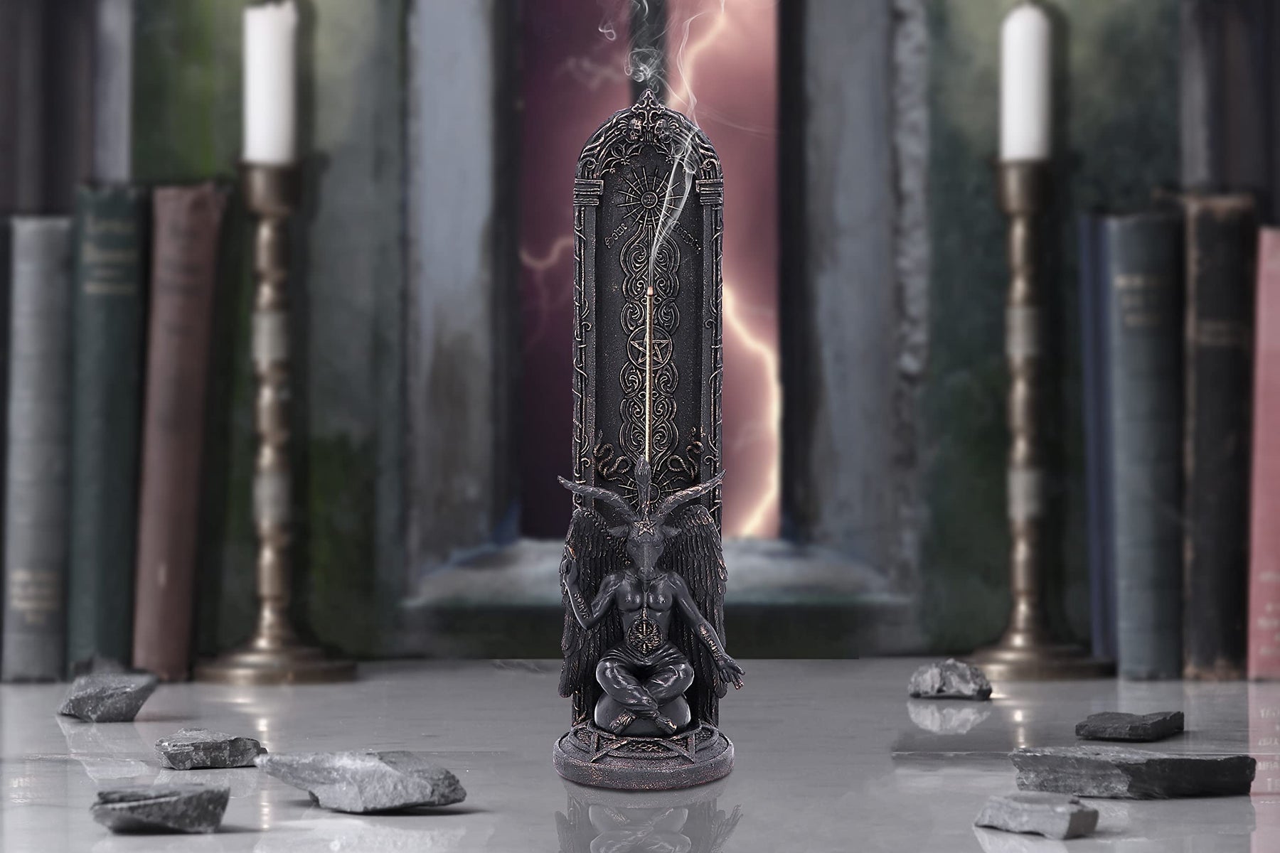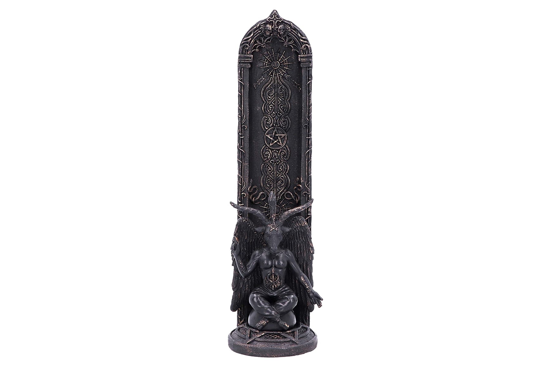 Resting in the centre of a pentagram, the globe of the earth acts as Baphomet's seat. Sitting cross-legged on top of the world, Baphomet sits, symbolizing the sum total of the universe. The back of the burner is decorated in symbology with gold detailing, and is perfect for burning your favourite incense sticks. Worshipped by occultists from Jacques de Molay's Templars to Alistair Crowley, Baphomet has long been a symbol of free-thinking heresy and forbidden knowledge. Cast in the finest resin before being expertly hand-painted, this Baphomet's Essence Incense Burner is ideal for any gothic or horror lover.