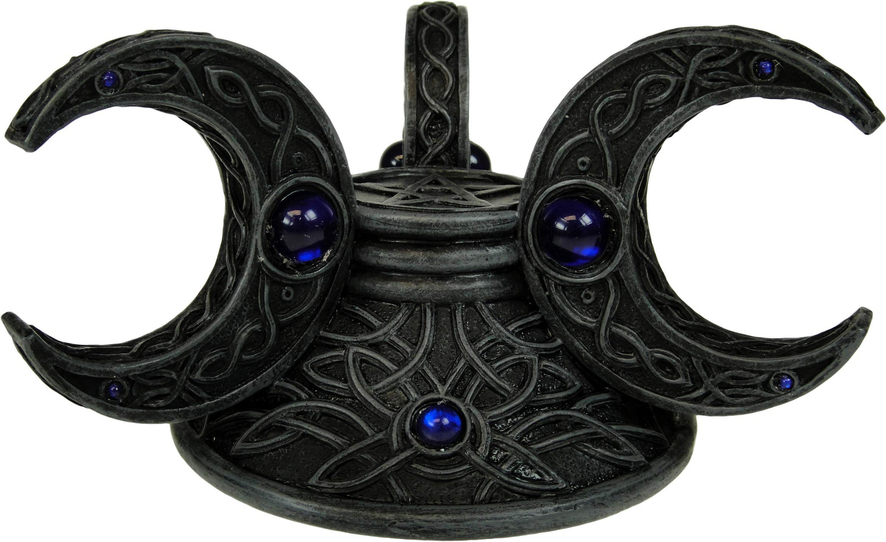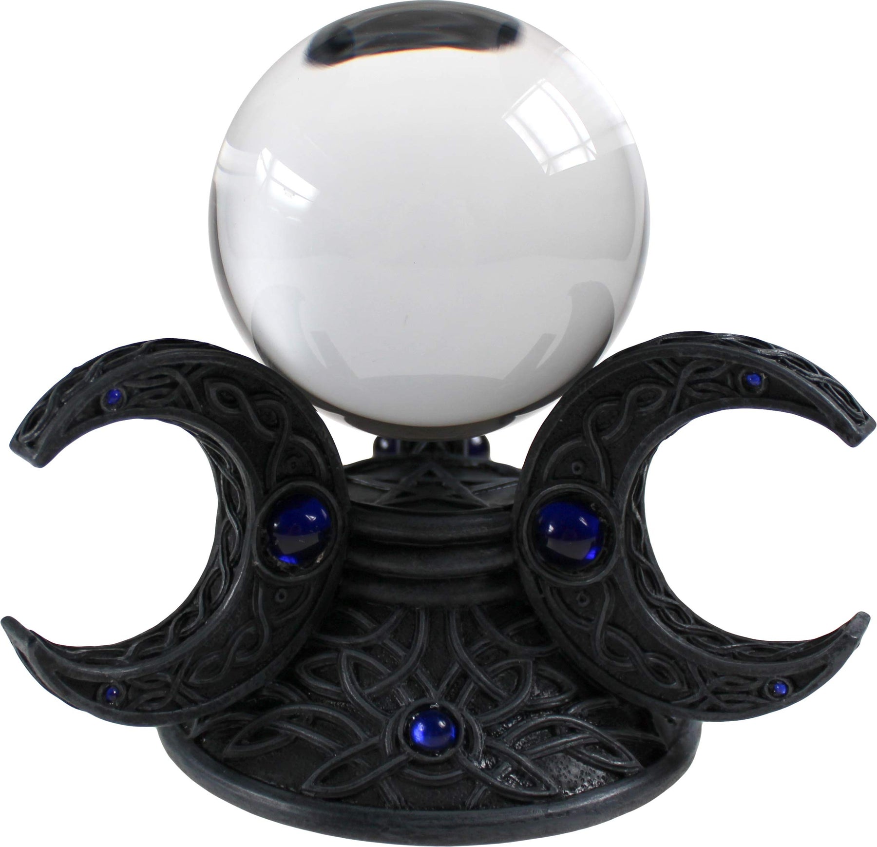 This enchanting Triple Moon Crystal Ball holder is the perfect addition to any witching home. Designed by alternative brand Nemesis Now, each crescent moon is in place to perfectly hold your crystal ball. Decorated with intricate Celtic patterns, each moon has two smaller blue jewels at each point and a large on in the centre. The base mirrors the pattern on the crescents but is centred by a carved pentagram. Cast in the finest resin, this piece is perfect for discovering your future.