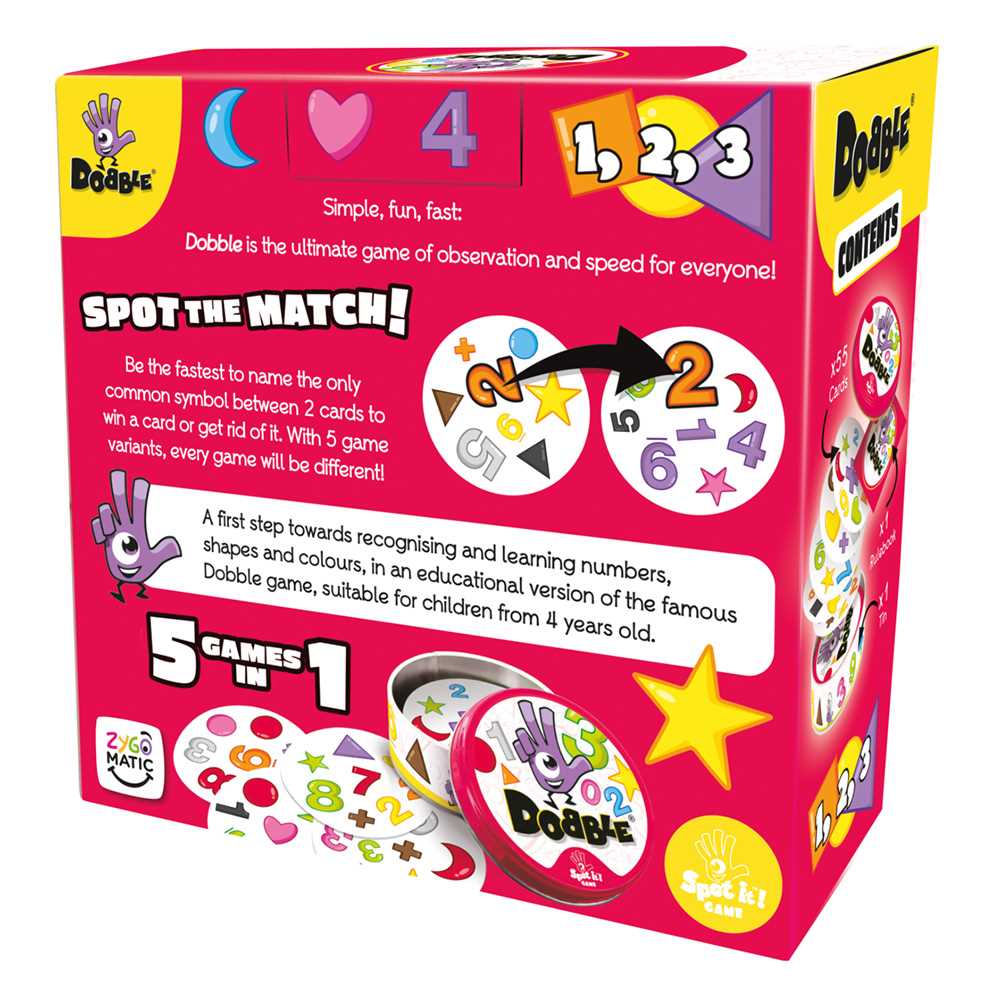A joyful approach to teaching children their numbers, colours, and shapes, in addition to the importance of play! Dobble is a card game based on visual perception that can be played by anyone, of any age or interest, with anywhere from two to eight players who are at least six years old.