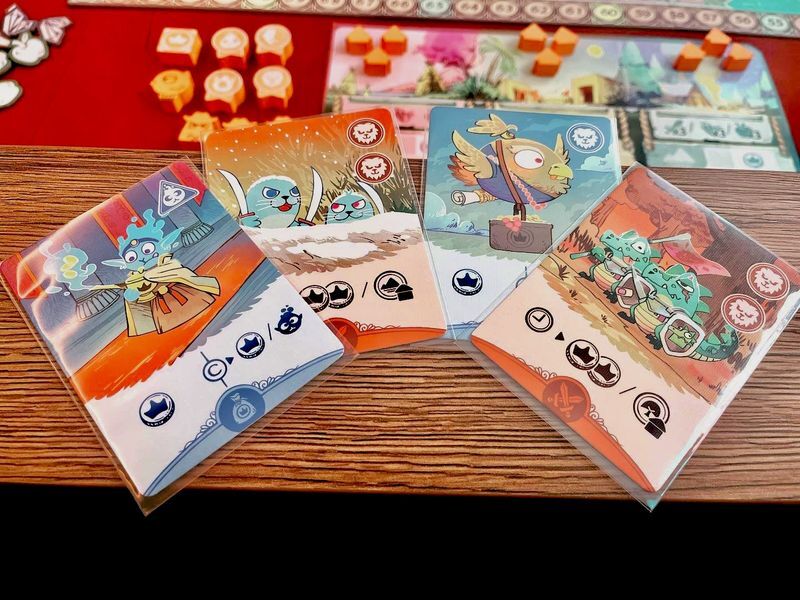 Some of the Adventure cards give instant benefits, boosting your powers; some give ongoing abilities, engine-building in your tableau; and all of them increase your reputation with different races of Navoria, unlocking end-game bonuses through set-collection.