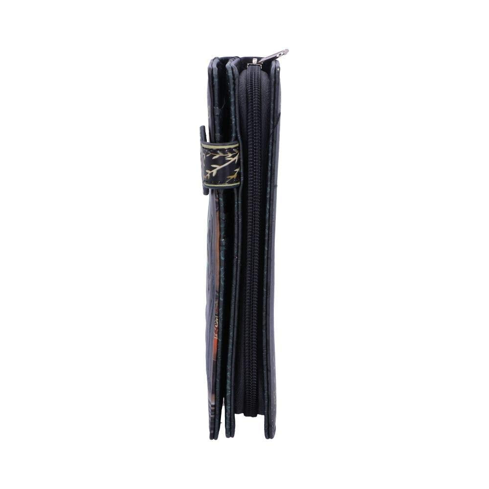 From the untamed imagination of Lisa Parker, this embossed purse was created by Nemesis Now. Sat on an ornate dressing table, a black familiar sits with a red collar around its neck, adorned with a small silver triquetra. Beside the cat sits a small Pontellier glass, half-filled with the infamous Green liquid, Absinthe. A small Absinthe spoon sits atop the glass with a cube of sugar, waiting to be immersed in the liquid. The Black cat is perfectly still, mesmerised by the Green Fairy that floats from the glass. The beautiful embossed detailing enhances the magic and creates a striking 3D effect while the large compartments make it a wonderfully practical piece.
