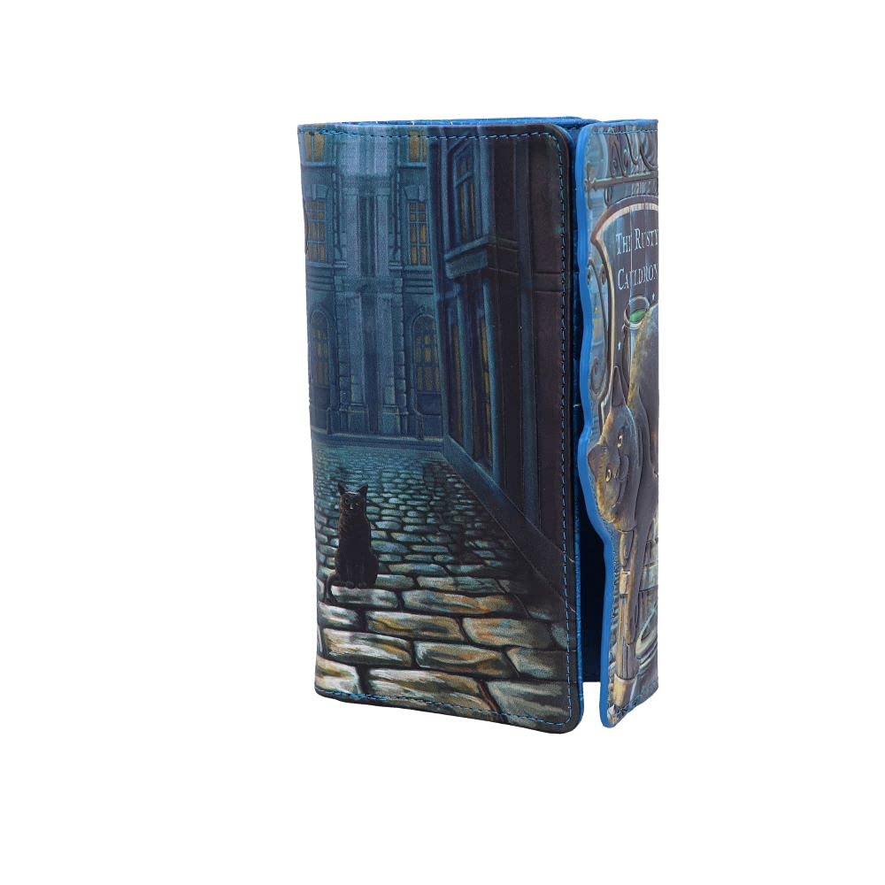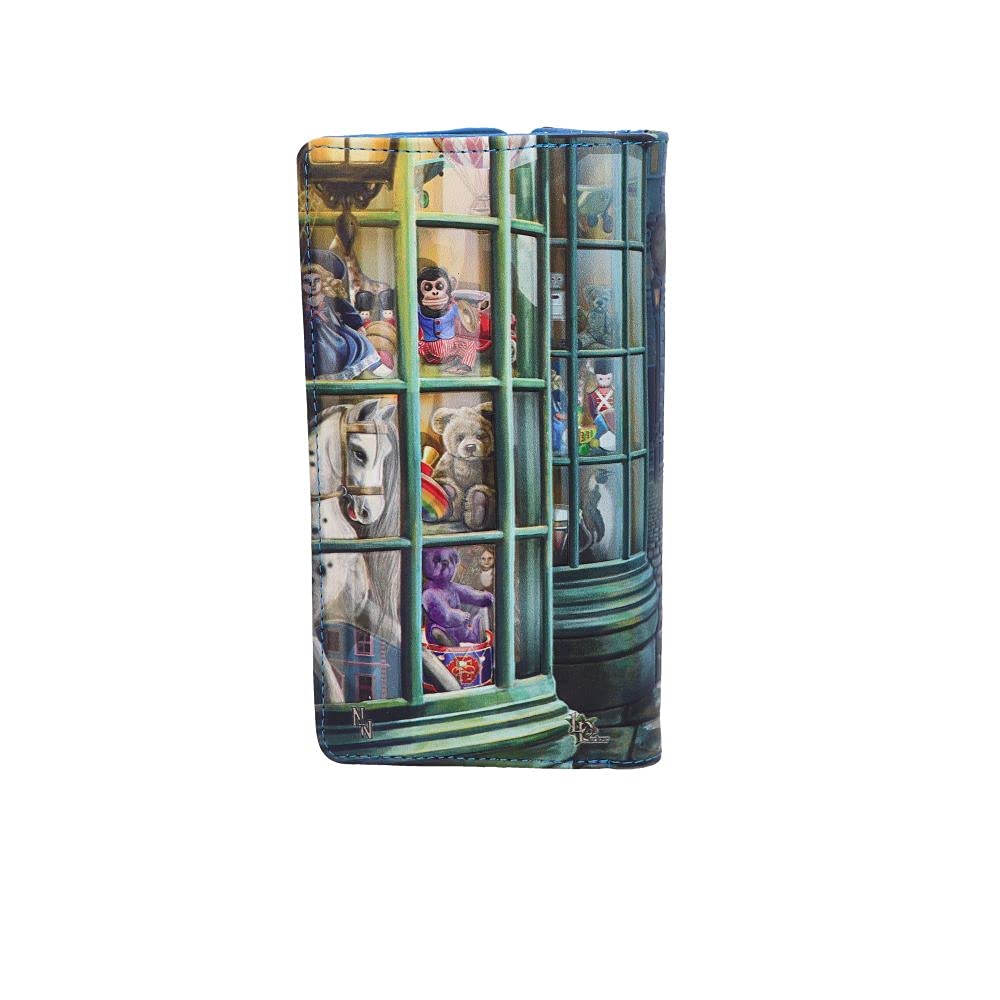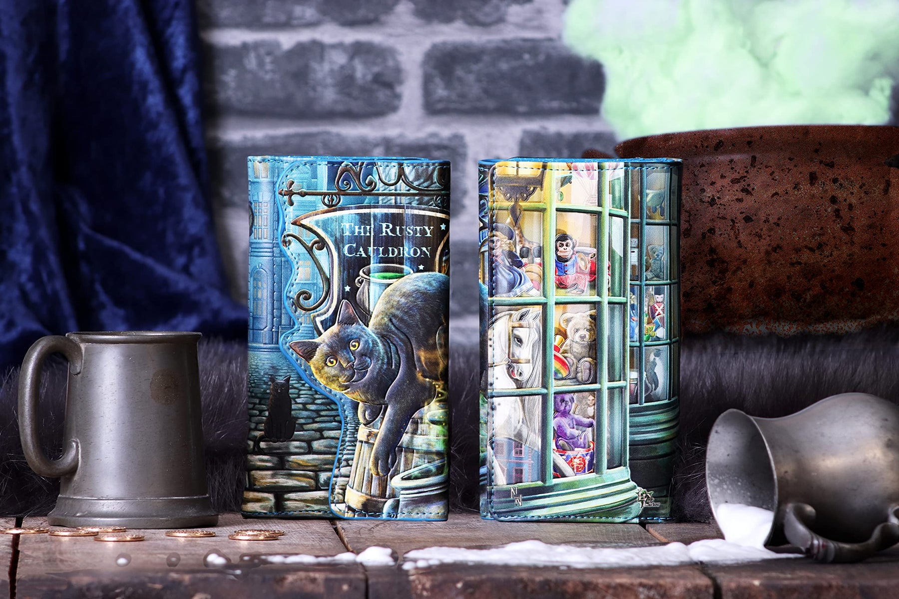 From the magical artwork of Lisa Parker, is this Rusty Cauldron Embossed Purse. On the front features a mysterious black cat emerging in front of The Rusty Cauldron pub in a dark cobbled alley. The back of the purse shows a toy shop window full of old toys waiting for a new lease of life. Spacious and stylish, this embossed purse if perfect for keeping all your cash and cards safe.