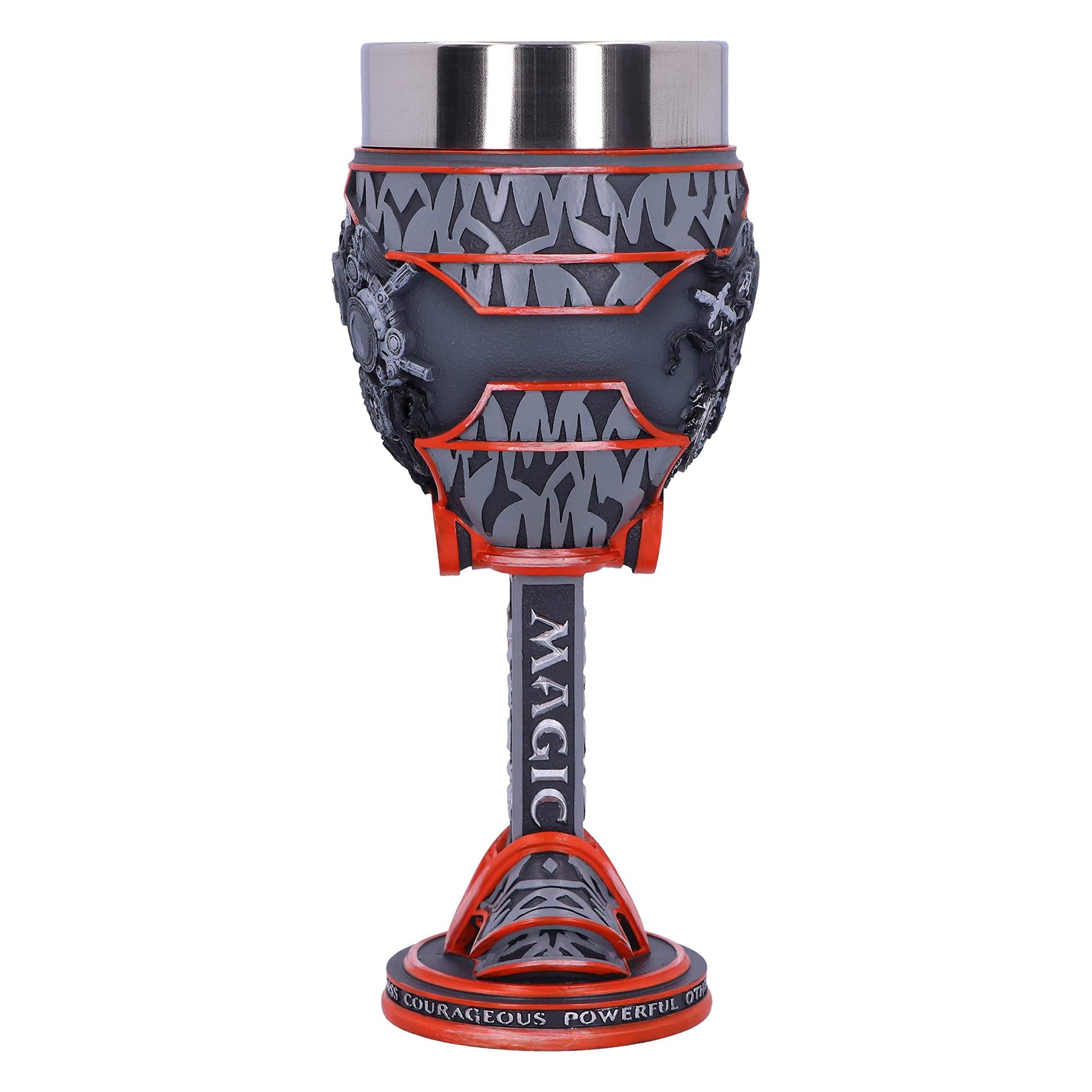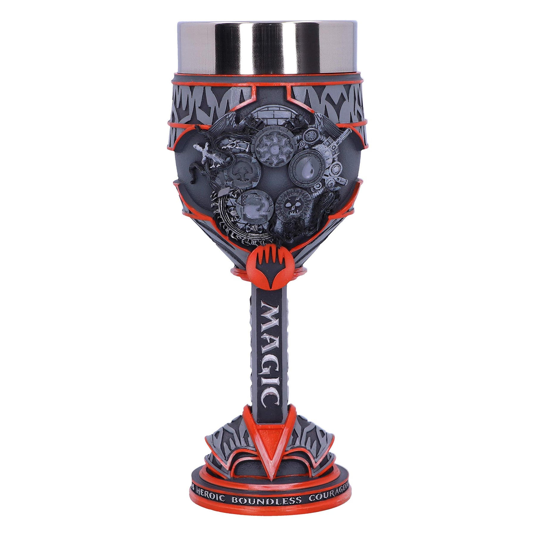 Commemorate the first modern trading card game with Nemesis Now's Magic: The Gathering goblet. Emblazoned at the top of the stem is the bright orange Planeswalker spark. The focal point of the goblet is the highly detailed 'Colour Wheel' at its centre. There are five colour identities: white, blue, black, red and green, each representing both a way of thinking about the world and a collection of related magical powers. Towards the base of the goblet the words; Adventurous, Heroic, Boundless, Courageous, Powerful and Otherworldly, terms that describe most Planeswalkers. Engraved on the stem is the Magic logo text. Cast in the finest resin, this MTG tankard will make a fine addition to any Planeswalkers collection.