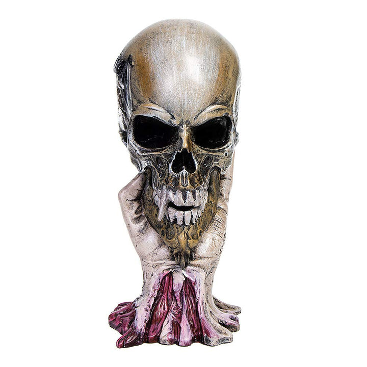 Show your love for Thrash Metal legends, Metallica, with this exquisitely designed skull from alternative brand Nemesis Now! The inspiration for this piece comes from the Sad but True artwork that was drawn up by their regular designer Pushead. This fanged skull is held up by a human hand, which seems to shred into pieces before becoming a stable base. At the side of the skull the Metallica logo sits proudly. Cast in the finest resin before being expertly hand-painted, this piece is a perfect way to pay homage to one of the most influential heavy metal bands of all time!