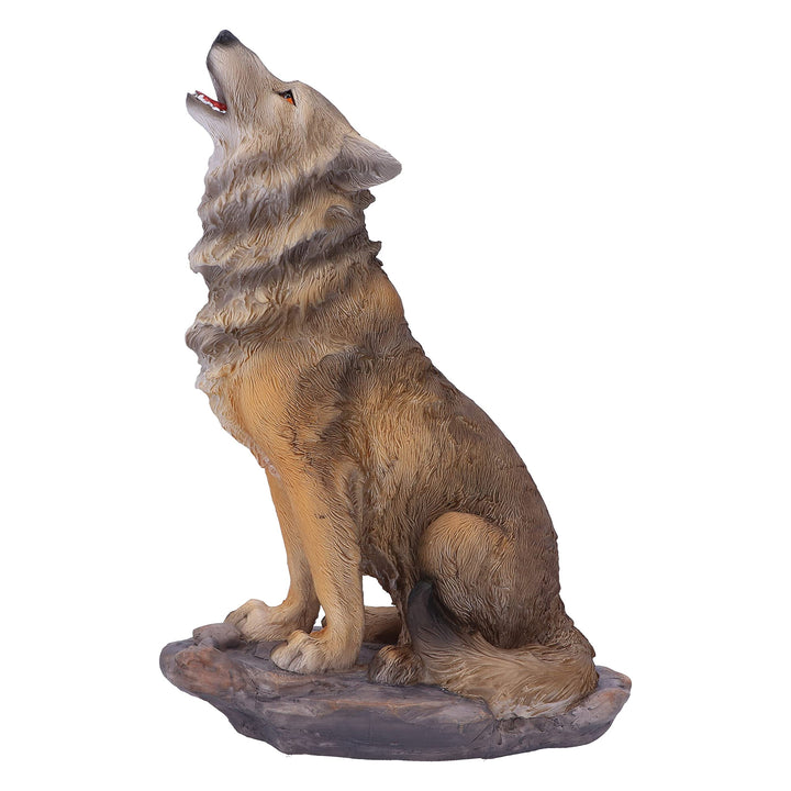This enchanting wolf figurine will bring the wild into any home. Sitting on a rocky outcrop, this imposing grey wolf stares to the sky with fierce orange eyes while calling their pack. Their stare betrays a preternatural intelligence and wisdom, signalling that this is no ordinary wolf. Cast in top-quality resin before being lovingly hand-painted, this figure is perfect for anyone who feels at one with the wild.