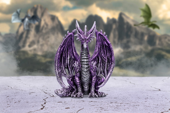 Exclusively available as part of Nemesis Now's wholesale giftware range is this Porfirio. This majestic creature crouches low, wings dominating its back and metallic purple scales shimmering in the light. They wait, guarding their surroundings waiting to battle any intruders. Cast in the finest resin before being hand-painted, this Porfirio will make the perfect addition to any dragon or fantasy collection.