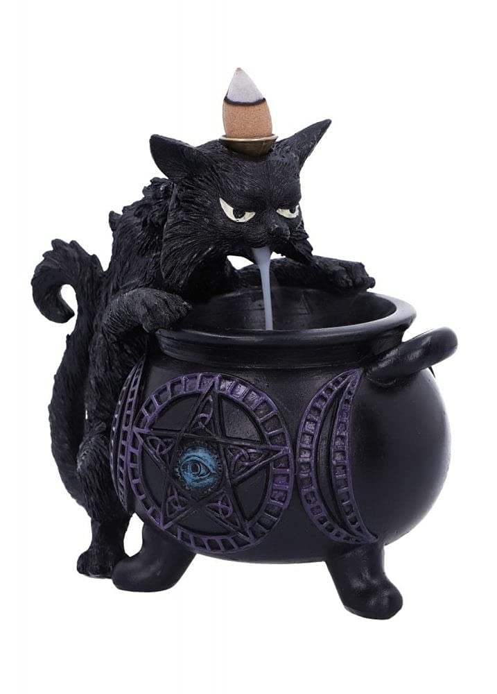 Available as part of Nemesis Now's extensive giftware collection, this cat looks thoroughly unimpressed! His fur is scruffy as he hunches over his companion's cauldron, contemplating life. Being a witches familiar is a rough job, and Spite certainly shows it! On his head sits a backflow incense cone dish, ready to use with your favourite scent. Cast in the finest resin before being carefully hand-painted, this piece would make the perfect gift for any Witch in need of a companion!