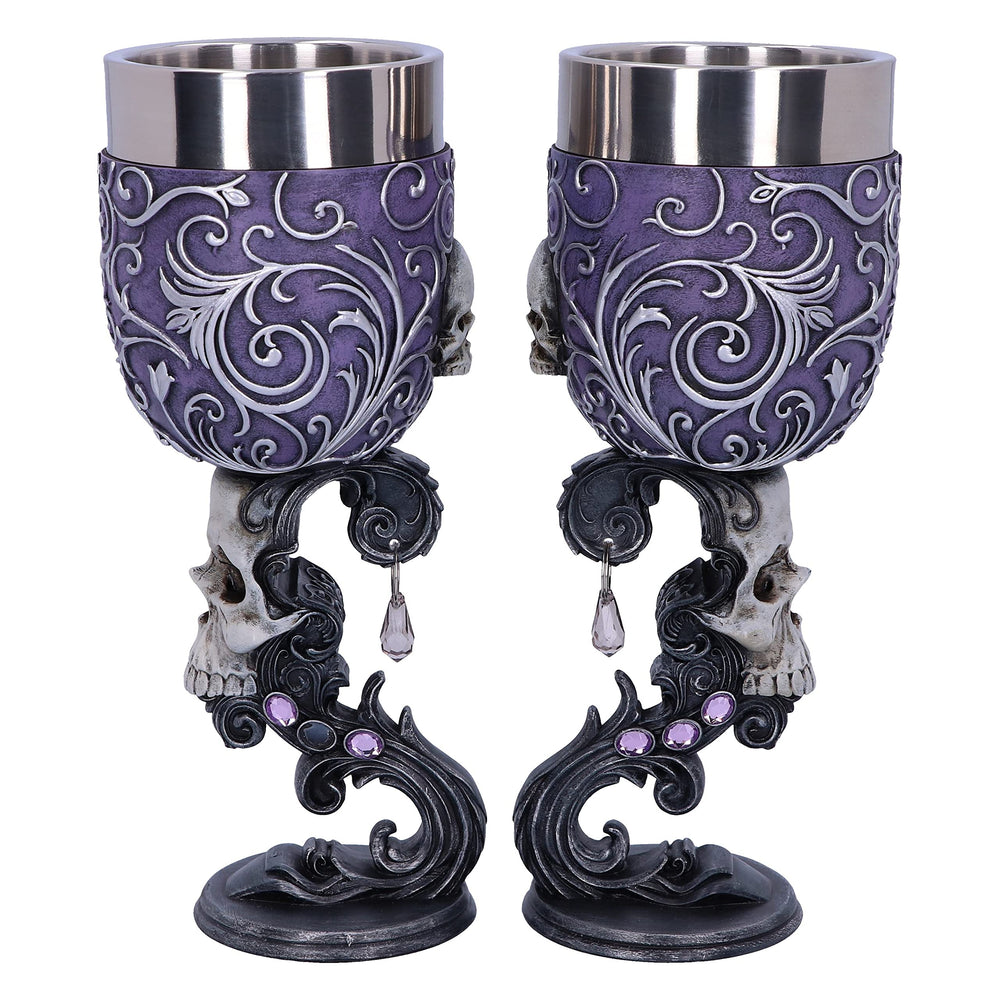 Deaths Desire Twin Skull Heart Set of Two Goblets 18.5cm 2