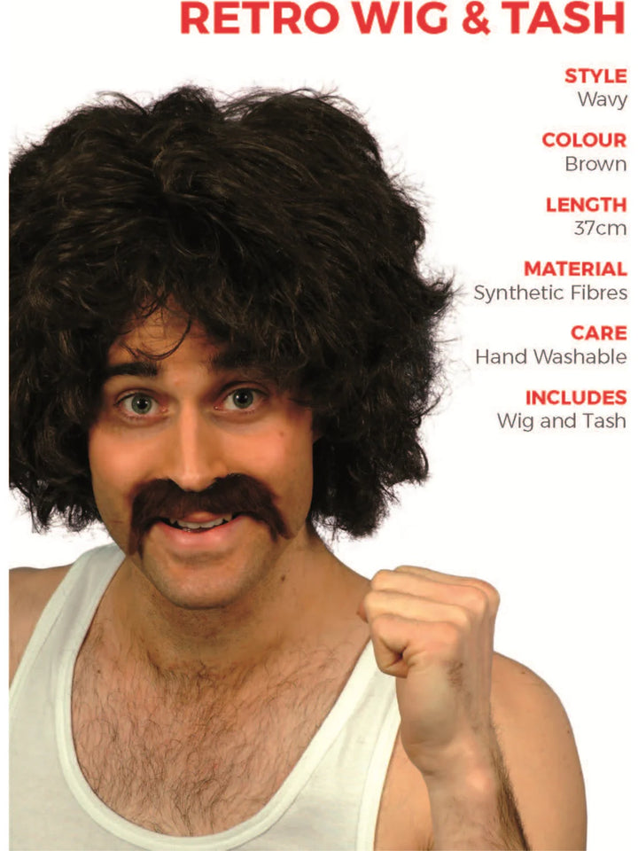 Bring the iconic style of the 1980s to life with this 80s Retro Wig and Tash Set! Perfect for themed parties, Halloween, or fun nights out, this dark brown 80s wig and matching moustache set will instantly transform your look.