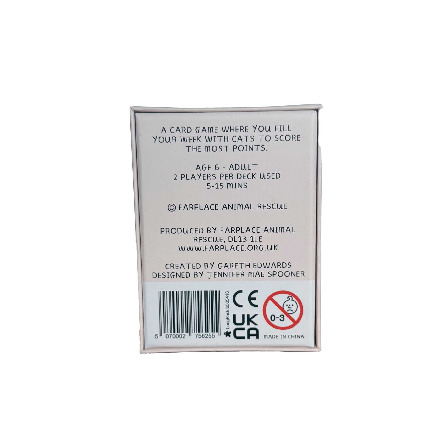 A short strategic card game where you want to fill your week of cats and score more points than anyone else. Start with a cat tree enabling placement of 3 cats on the same day, increasing your score.