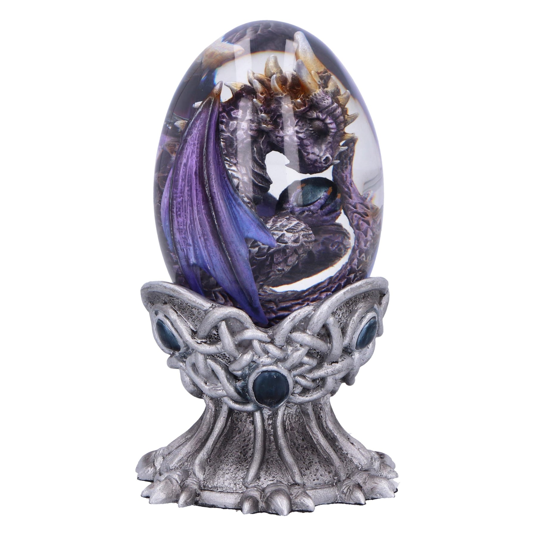 Introducing Elemental Dragonlings - Air, a stunning silver dragonling with exquisite purple wings, delicately housed within a crystal-clear egg. Designed by Nemesis Now, this enchanting piece is meticulously cast in resin and hand-painted with intricate detail. The egg, which can be removed from its ornate silver stand, offers versatile display options, making it a unique centerpiece in any fantasy collection. Arriving in a protective gift box, this magical dragonling is the perfect gift for dragon enthusiasts and fans of mythical legends alike.