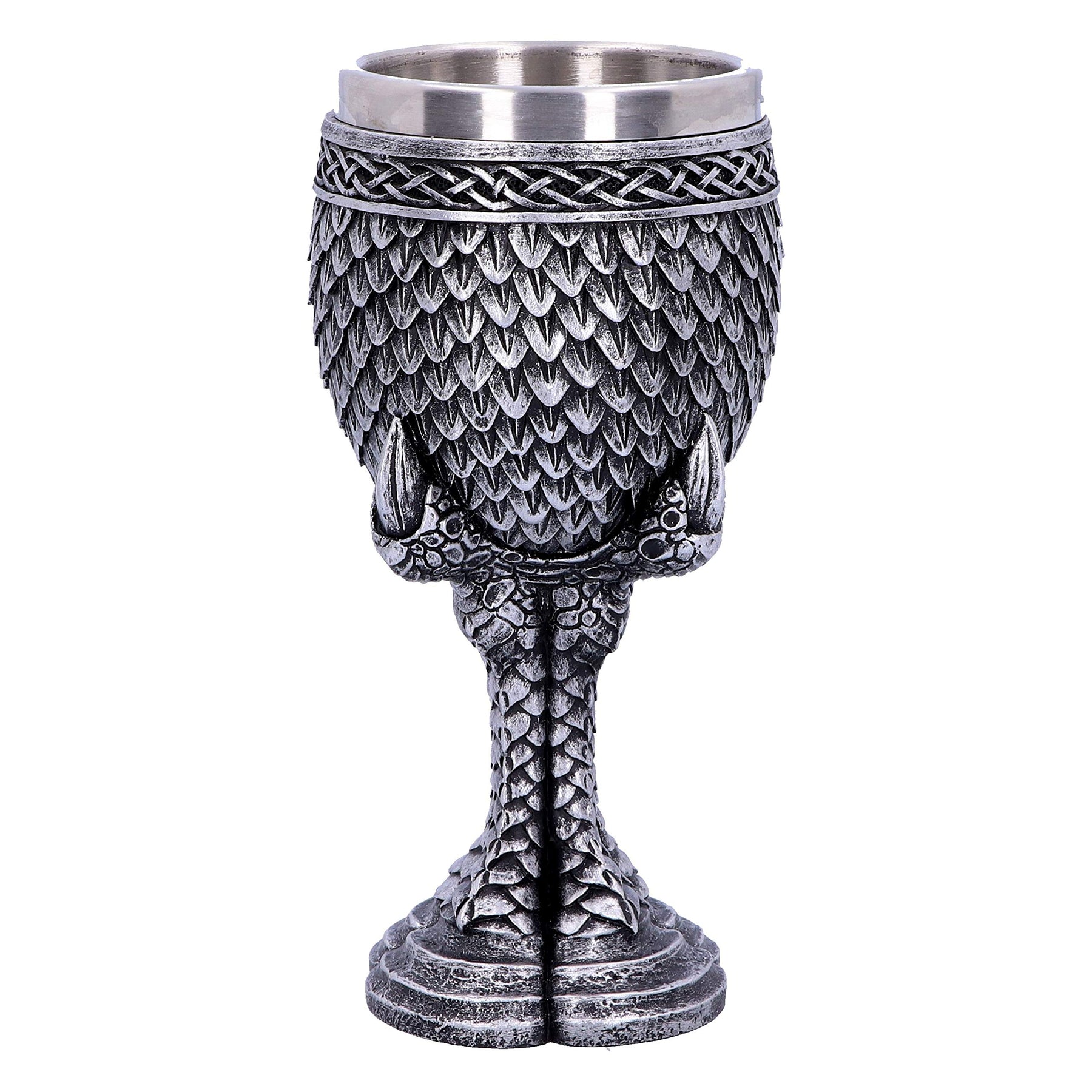 Give a gift fit for a Dragon Queen with this amazing Grey Scale goblet from alternative brand Nemesis Now's giftware collection! Modelled on a mythical Dragon's egg, the metallic silver scales overlap each other to perfectly create the cup of the goblet. Held up by a large Dragons claw, acting as a sturdy stem, the cup is topped by a wide band of Celtic patterns. Cast in the highest quality resin before being hand-painted, this piece features a removable stainless steel insert for ease of cleaning.
