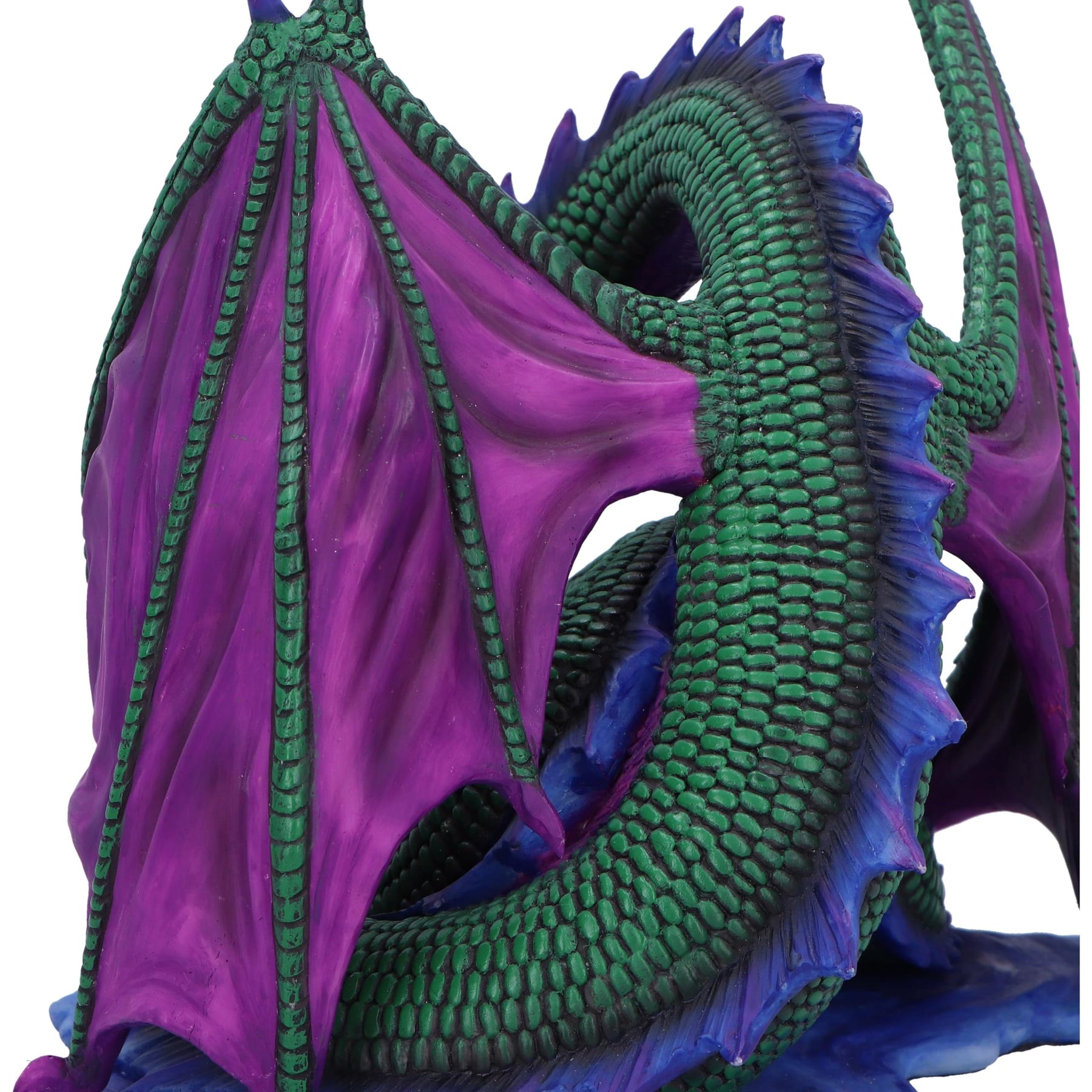 - creating an aura of magical guardianship and features lustrous green scales and majestic purple wings that are adorned with delicate blue accents