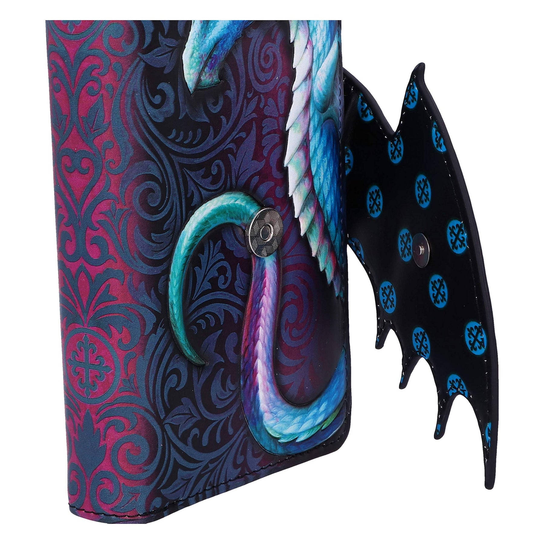 From the untamed imagination of Nemesis Now's in-house design team, this embossed Purse is beautifully crafted. Dragons have been a part of folklore and literature since the dawn of time, whether they be treasure hoarders or flying menaces and now you can own your own piece of mythology with our Take Flight Purse. Featuring the profile of a beautiful Blue Dragon, with its large wing covering its side, this purse is not what it seems. The wing can be unfastened to open the cardholder slot! Genius! Covered in embossed Baroque designs, this purse has multiple slots for holding both cards, cash and coins.