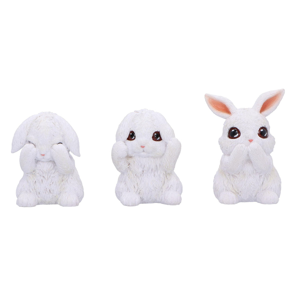 Three Wise White Bunny Figurines Bunnies 9cm