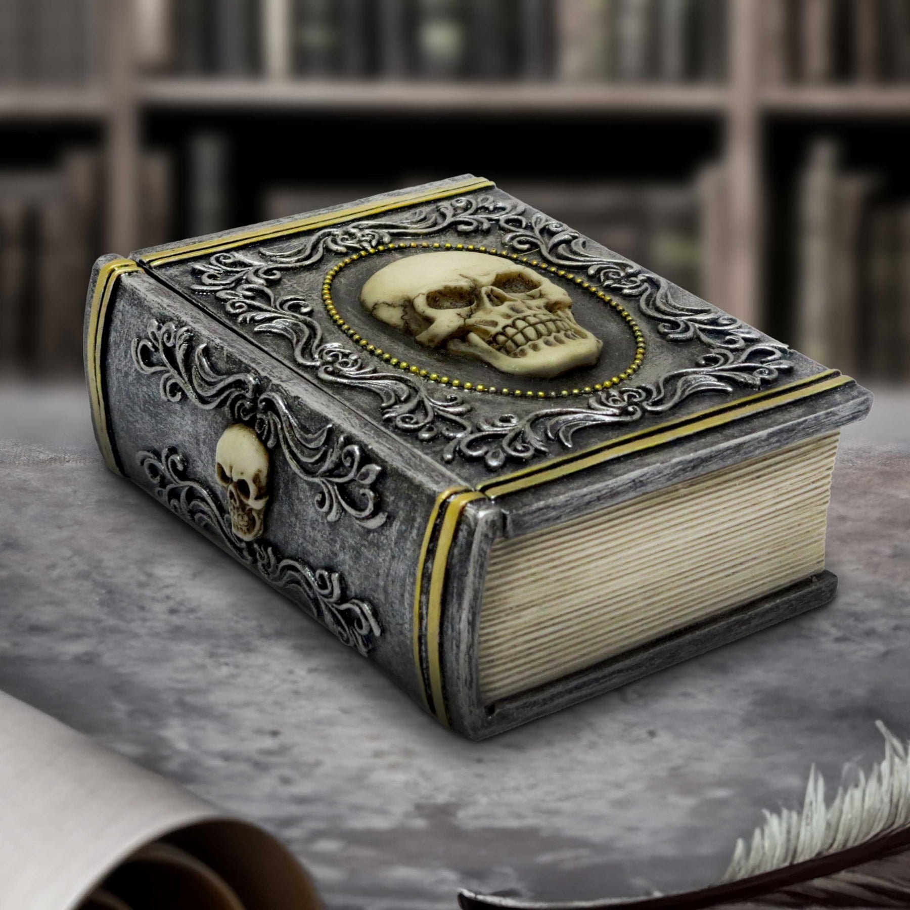 • Grimoire Treasure Box 11cm: Uncover the enigmatic charm of the Skull Book Box