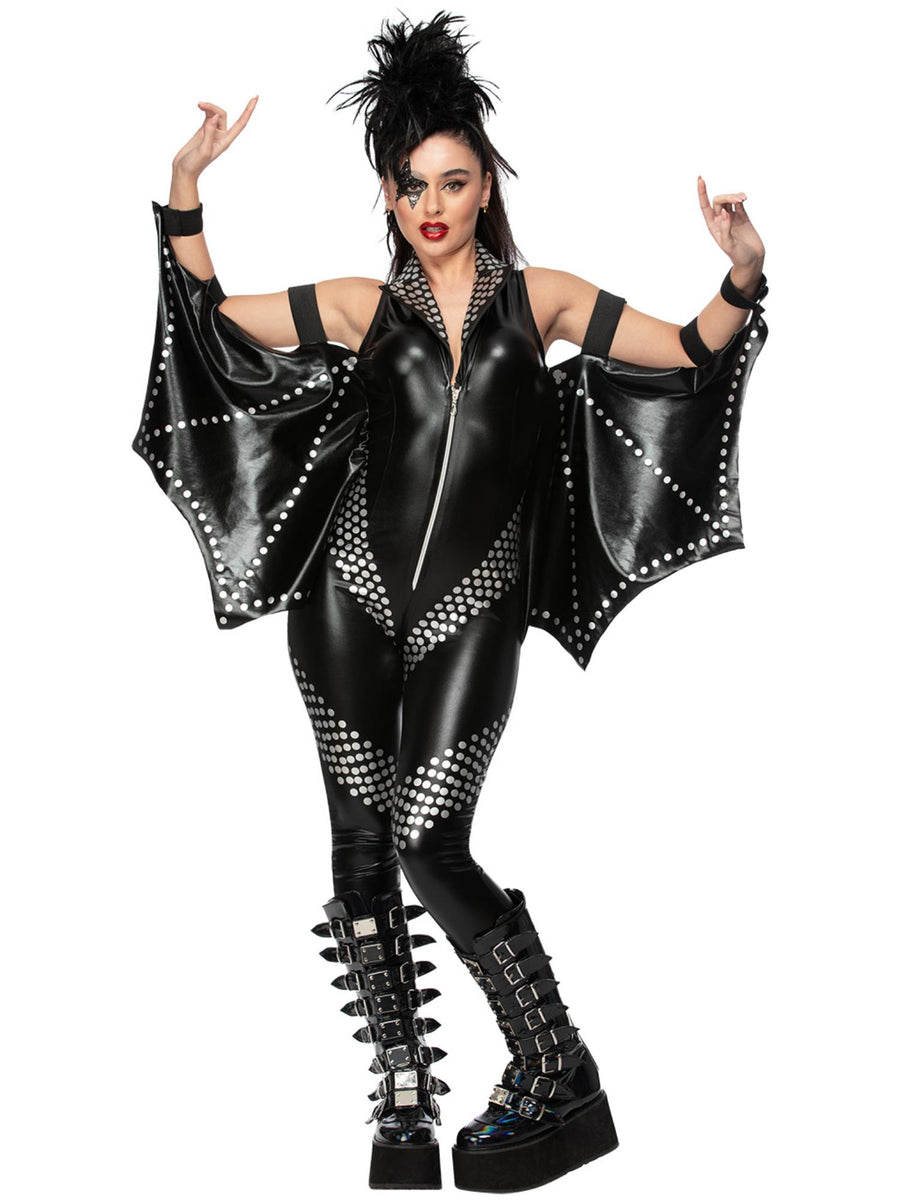 Fever Rockstar Costume Jumpsuit with Bat Wings