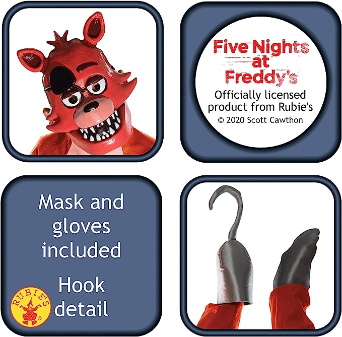 Welcome To Freddy Fazbear's Pizza Shop! Look Behind The Curtain In Pirate Cove and He May Emerge! Meet Foxy, An Animatronic Pirate Fox and Key Character In The Video Game Five Nights At Freddy's. If You Love Horror Gaming, This Is Your Fox! With A Patch Over His Eye and An Orange Jumpsuit He Has A Bunch Of Crazed Animals For Friends, Like Freddy, Chica and Bonnie. Why Not Take On The Persona As Foxy This Halloween! Can You Survive Five Nights?