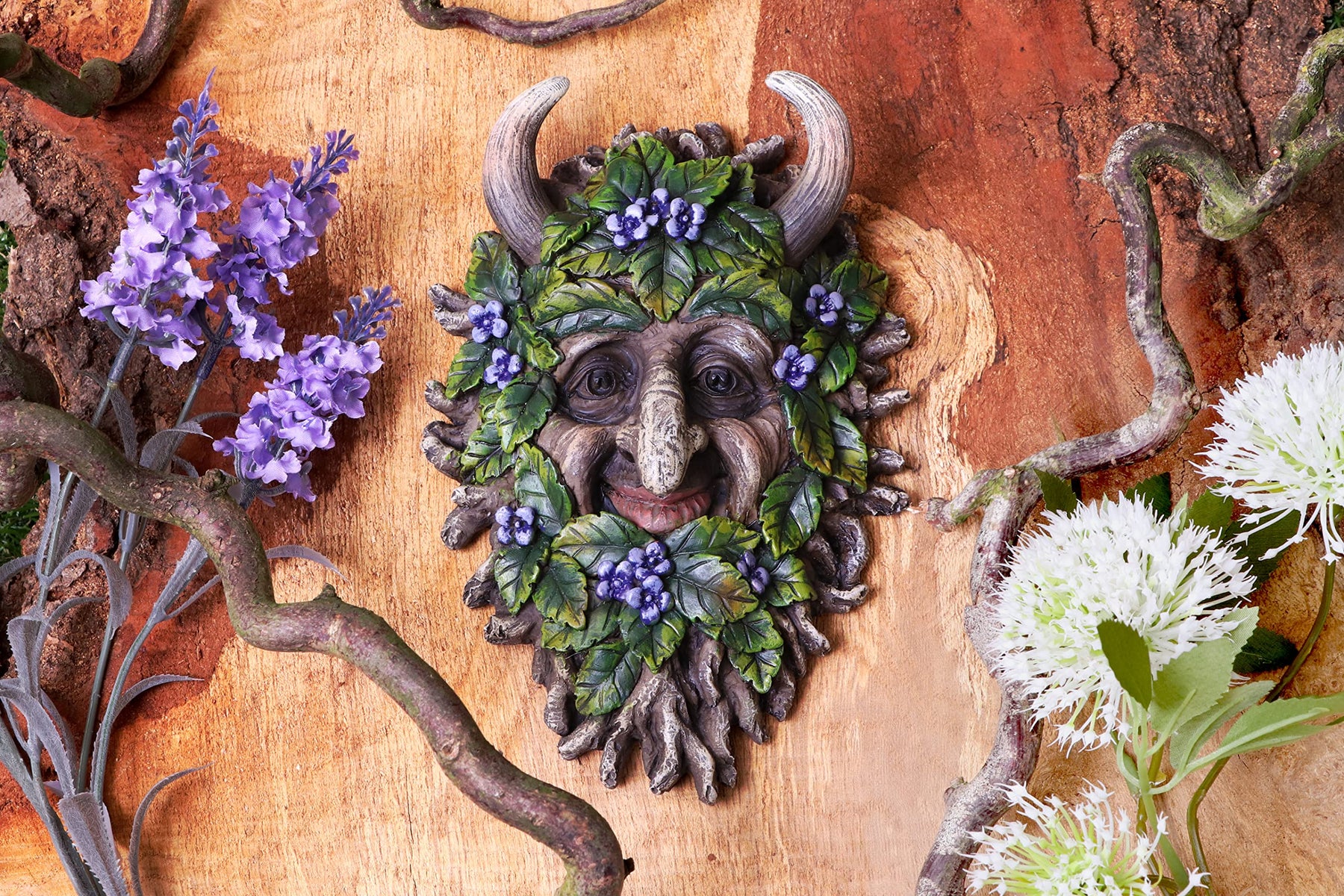 Show your love for anicent shepherds of the forest with Alder, a wall mounted tree spirit. A cheerful face is formed of green leaves and dainty purple flowers with curved horns rising from their head. Cast in the finest resin, before being expertly hand-painted, this piece will bring nature, magic and mystery into any home.