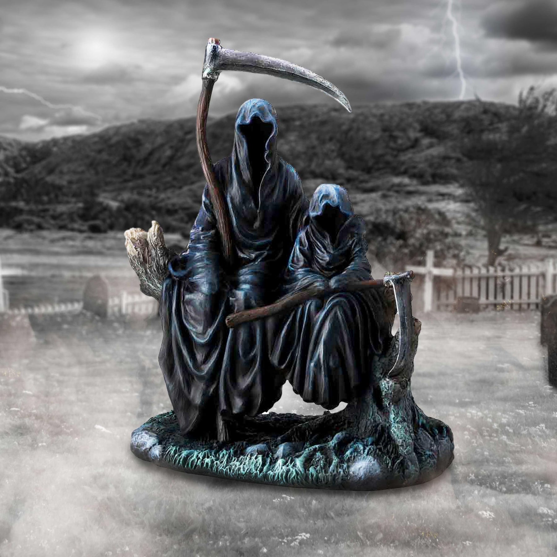 - Reaper Resting on Tree Stump with Child Ornament: This evocative piece from Nemesis Now's Fantasy and Gothic Selection captures the essence of sentiment