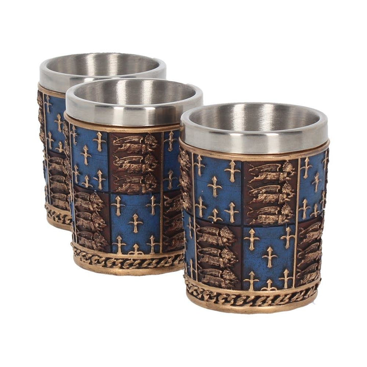 Show your noble roots with these fantastic Medieval shot glasses, created by alternative brand Nemesis Now. This shot glass bears a coat of arms type design, similar to the royal standard of Henry IV. Cast in the finest resin before being carefully hand-painted, these shot glasses are ideal to show your royal blood at any gathering.