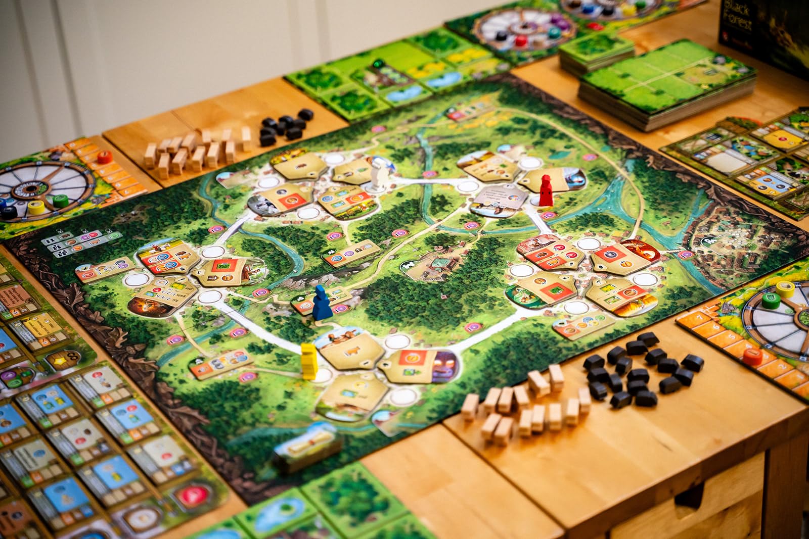 - RECRUITING TALENT: Travel through the Black forest from village to village hiring skilled tradespeople. Play solo or with up to 4 players, Ages 14+