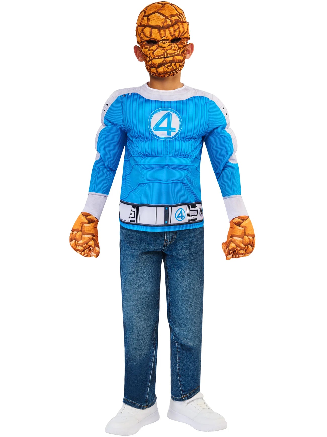 Gear up for adventure with this padded costume top, padded gloves, and a mask that channels the raw power and indomitable spirit of The Thing. It's not just a costume; it's an invitation to join the ranks of Marvel's legendary First Family and unleash your inner hero.