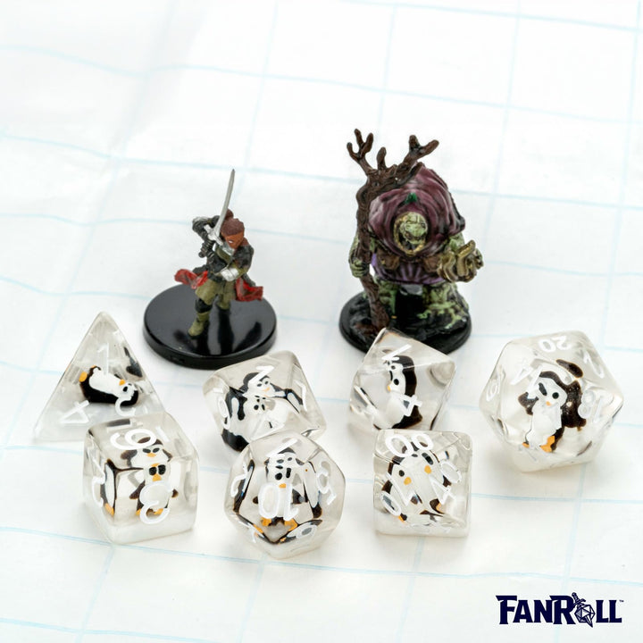 - Little penguins inside resin dice. Great for animal lovers and winter themed game nights.