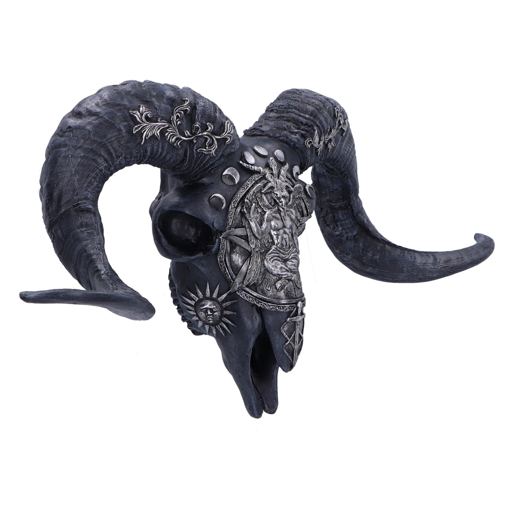 - Hanging Baphomet Skull Wall Plaque: This matte black skull showcases ornate occult symbols