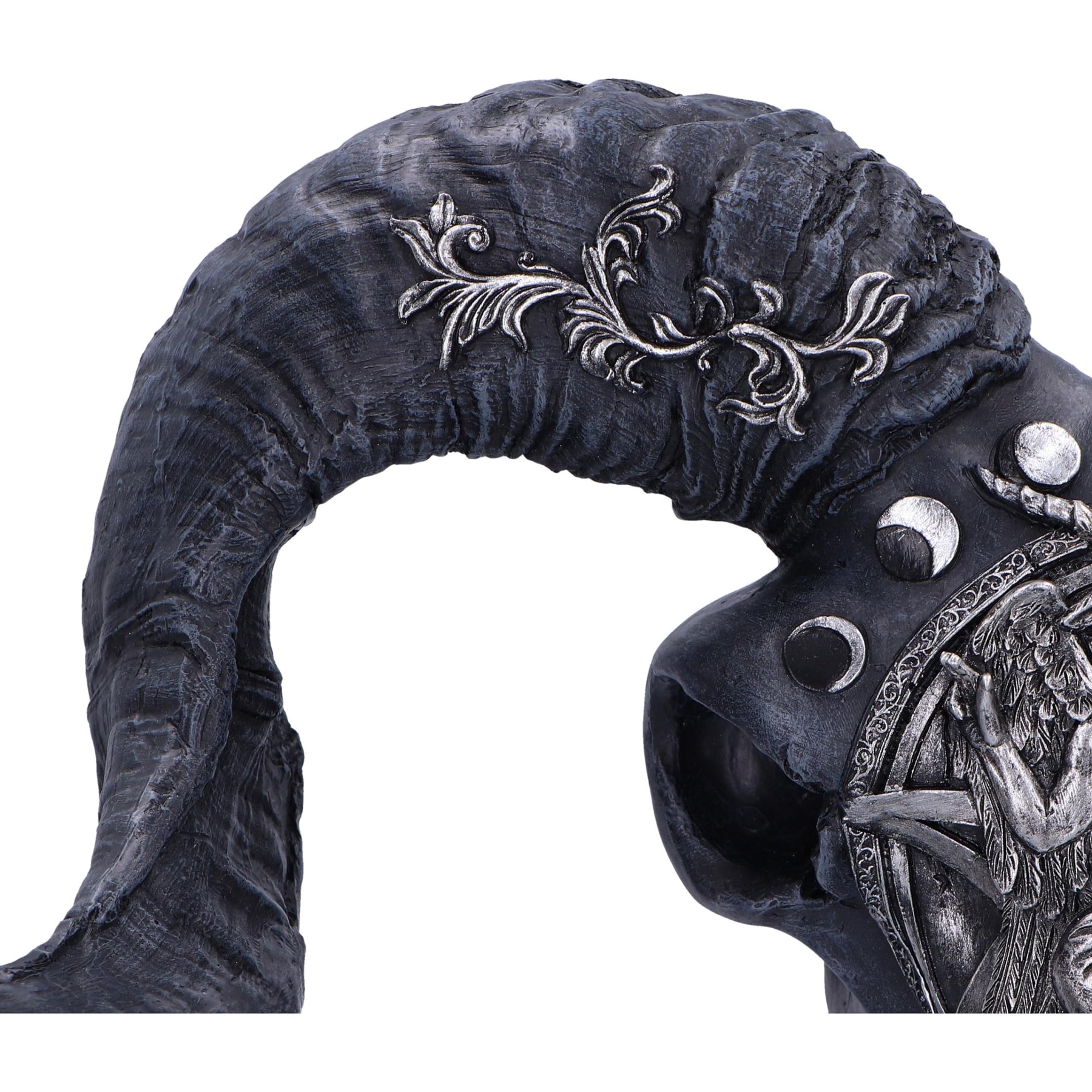 Immerse yourself in the enigmatic allure of our Baphomet's Veneration, a symbolically rich piece seamlessly blending the occult with intricate detailing, taken from Nemesis Now's premium collection. Crafted in resin, this matte black skull showcases ornate occult symbols, with a central Baphomet sitting atop a globe before a pentacle. Meticulously cast and hand-painted, the skull is coated in black with silver detailing, emphasizing the fine intricacies of the occult imagery and design. This figurine, a testament to meticulous craftsmanship, enriches our collection with its unique blend of symbolism, appealing to collectors and enthusiasts intrigued by the mysterious and symbolic elements embedded in its design. Ideal for those seeking to elevate their space with a touch of mystique, the Baphomet's Veneration captures the essence of occult aesthetics in a visually captivating and thought-provoking form.