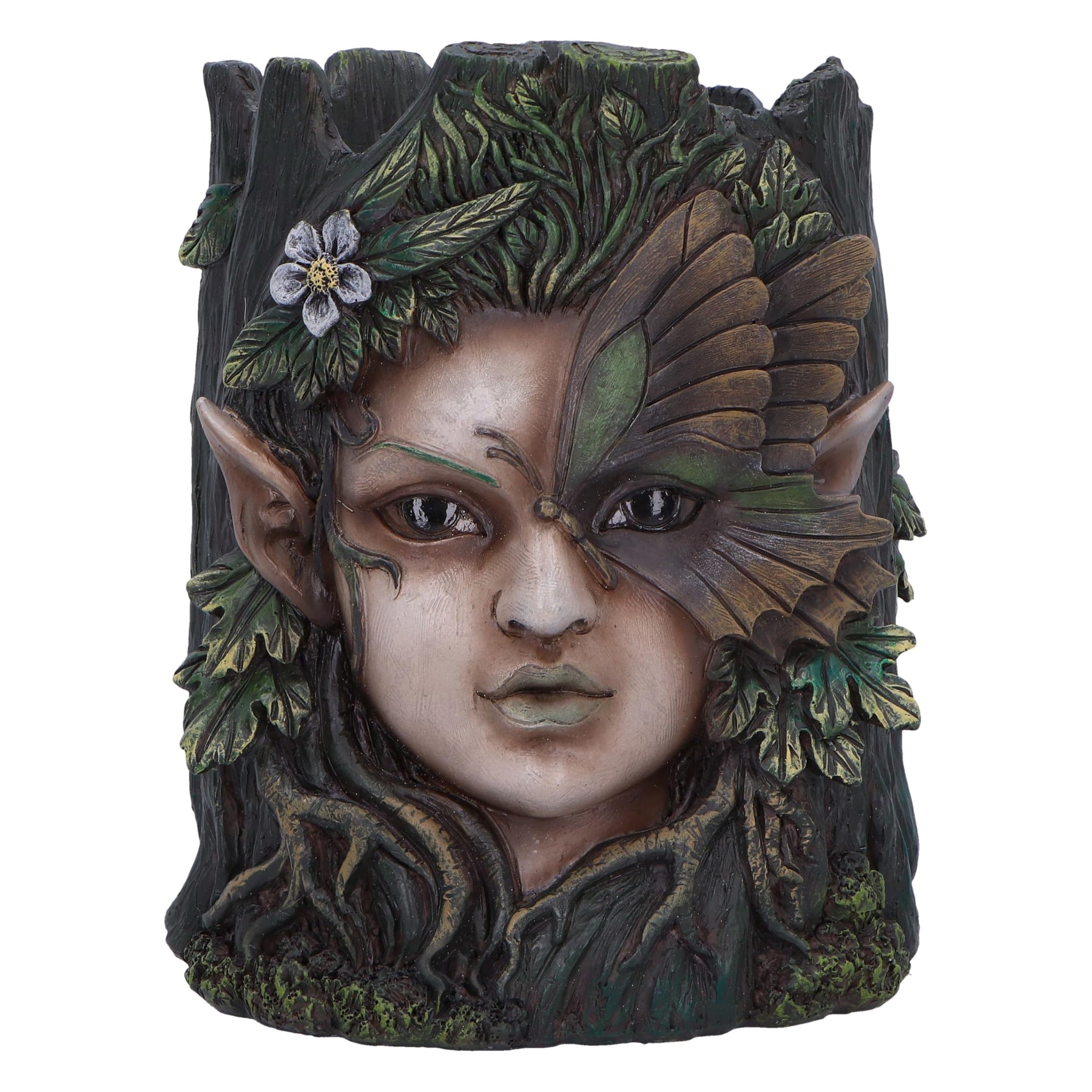 - Featuring An Enchanting Tree Goddess: Flora Planter's serene presence is accentuated by a vibrant butterfly