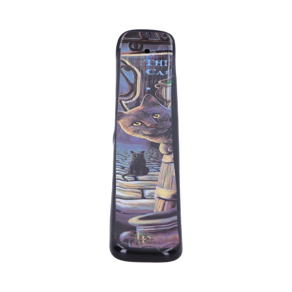 From the magical artwork of Lisa Parker, comes this Rusty Cauldron Incense Burner. Featuring her iconic Rusty Cauldron artwork of a mystic kitty who can be seen perched atop of a barrel outside of the rusty cauldron. Whilst behind him on the cobbled road, another feline can be seen gazing ahead, taking in it's surroundings of the magical highstreet they find themselves on. Designed with a small hole at the top, suitable for holding your favourite incense sticks, this Rusty Cauldron Incense Burner is the perfect addition to any fantasy collection.