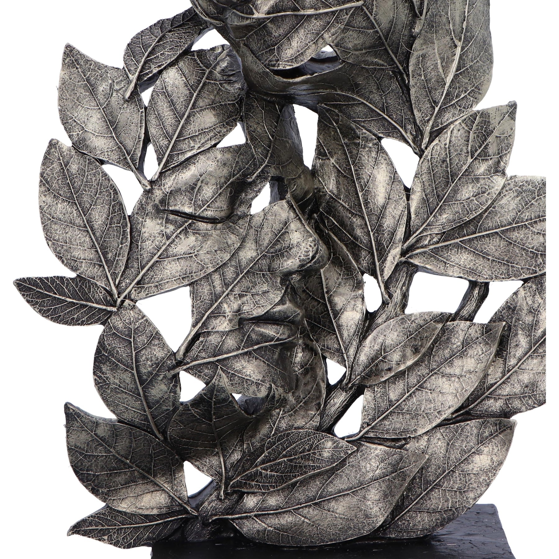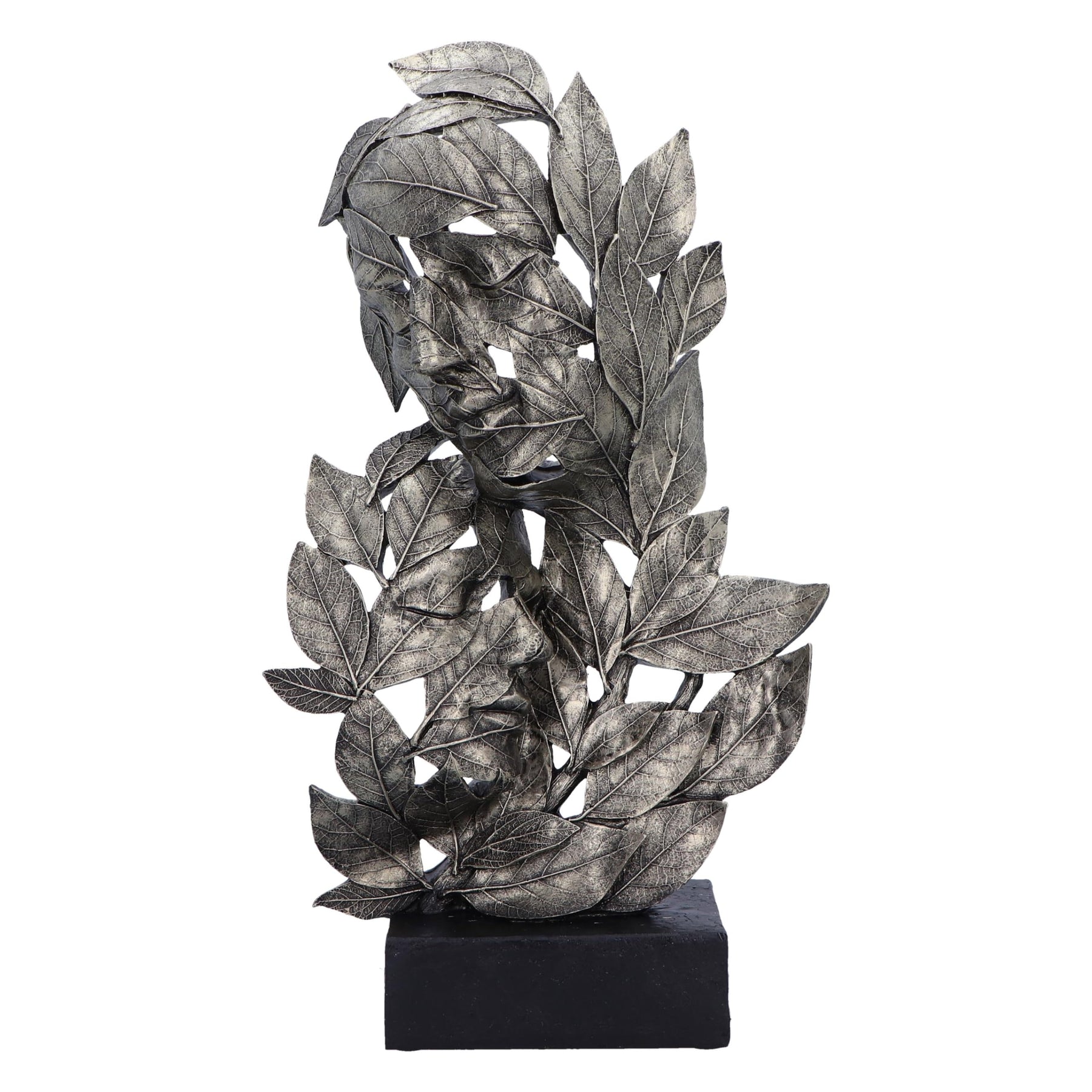 Natural Emotion - Embrace: Immerse yourself in the profound beauty of our resin art statue, Natural Emotion - Embrace, taken from Nemesis Now's premium collection. Crafted with meticulous attention from premium resin and adorned in a radiant silver finish, this captivating piece intricately sculpts leaves into the heads of a man and a woman, symbolizing a deep and tender embrace. Positioned with the man's head above, the woman gently leans on his chest, both with closed eyes, embodying the serene and contented nature of their love. The silver finish enhances the emotional resonance, while the painted black base provides a striking contrast, accentuating the depth of their connection. This sculpture, a poignant addition to our art collection, invites contemplation of the profound and enduring embrace between two souls, offering a visual narrative of love that transcends words. Ideal for collectors and art enthusiasts, Natural Emotion - Embrace enriches your home with the timeless beauty of a love that is both tender and enduring. Explore more from Nemesis Now to discover additional captivating pieces.