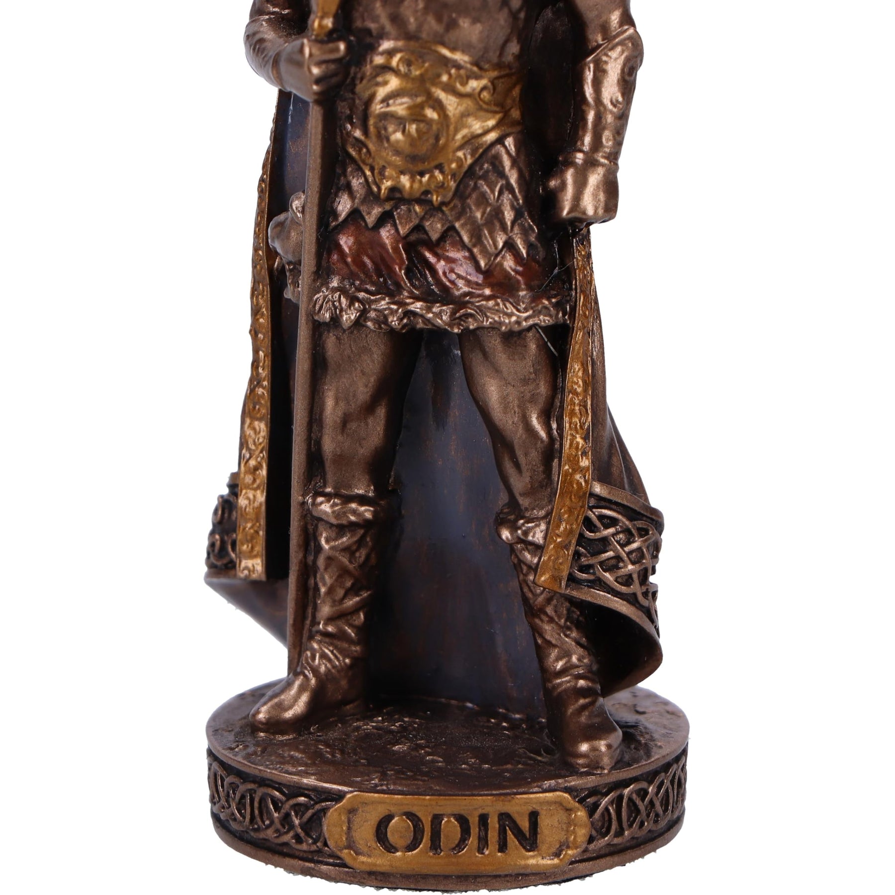 Elevate your collection with this exquisite miniature bronze figurine of Odin, the one-eyed god of war and death. Expertly cast in high-quality bronze resin, this detailed figurine features vibrant colored accents and a polished finish that highlights its premium craftsmanship. Carefully packaged to ensure its safe arrival, this iconic piece makes an exceptional gift for enthusiasts of Norse mythology, embodying the powerful essence of Odin in a stunning, collectible form.