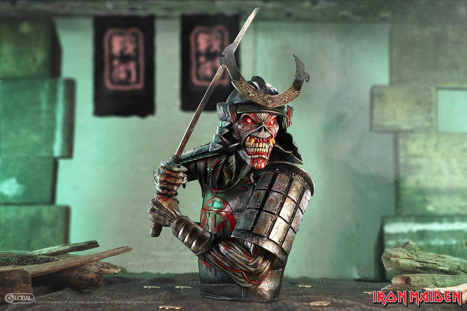 Show your allegiance to the Monsters of Rock with this electrifying and Officially Licensed Iron Maiden Samurai Eddie Bust, exclusive to Nemesis Now. This piece captures Eddie, the band's music icon, leaning forward, dressed in a Samurai warrior outfit, drawing back his sword and staring ahead menacingly, intimidating anyone in his path. Cast in the finest resin before being expertly hand-painted, this ideal piece of rock memorabilia will bring terror and excitement to any Maiden fan's soul.