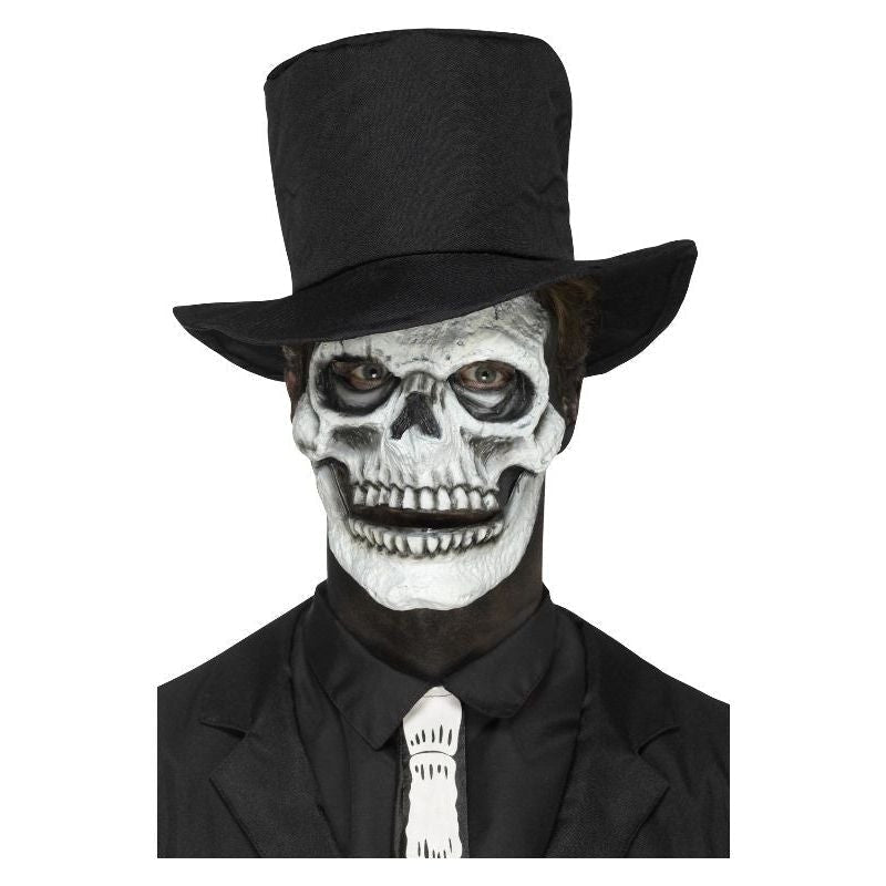 Foam Latex Skeleton Face Prosthetic, White, 2 Pieces With Movable Jaw and Adhesive