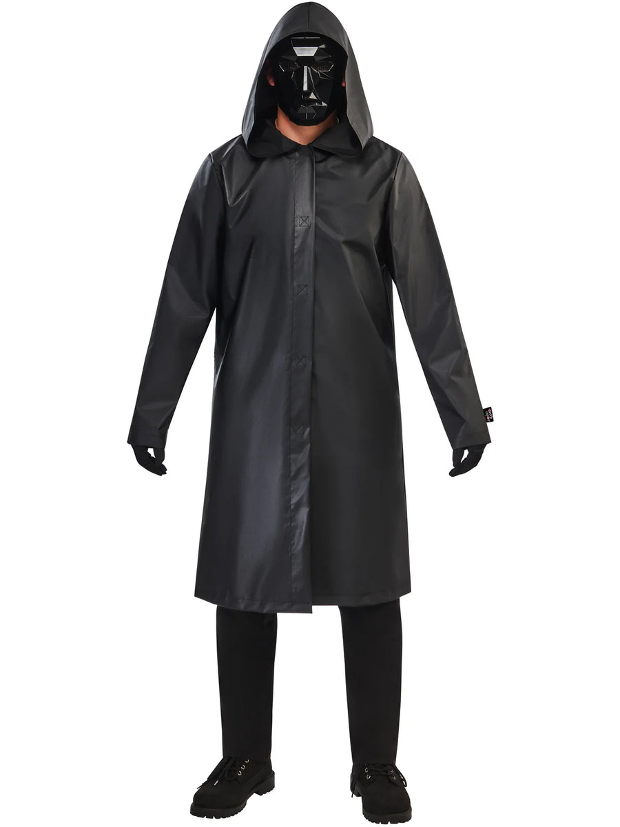 Mask Design: The mask is shaped like a smooth, blank face with no visible expression. This helps emphasize the authoritative, mysterious nature of his role.