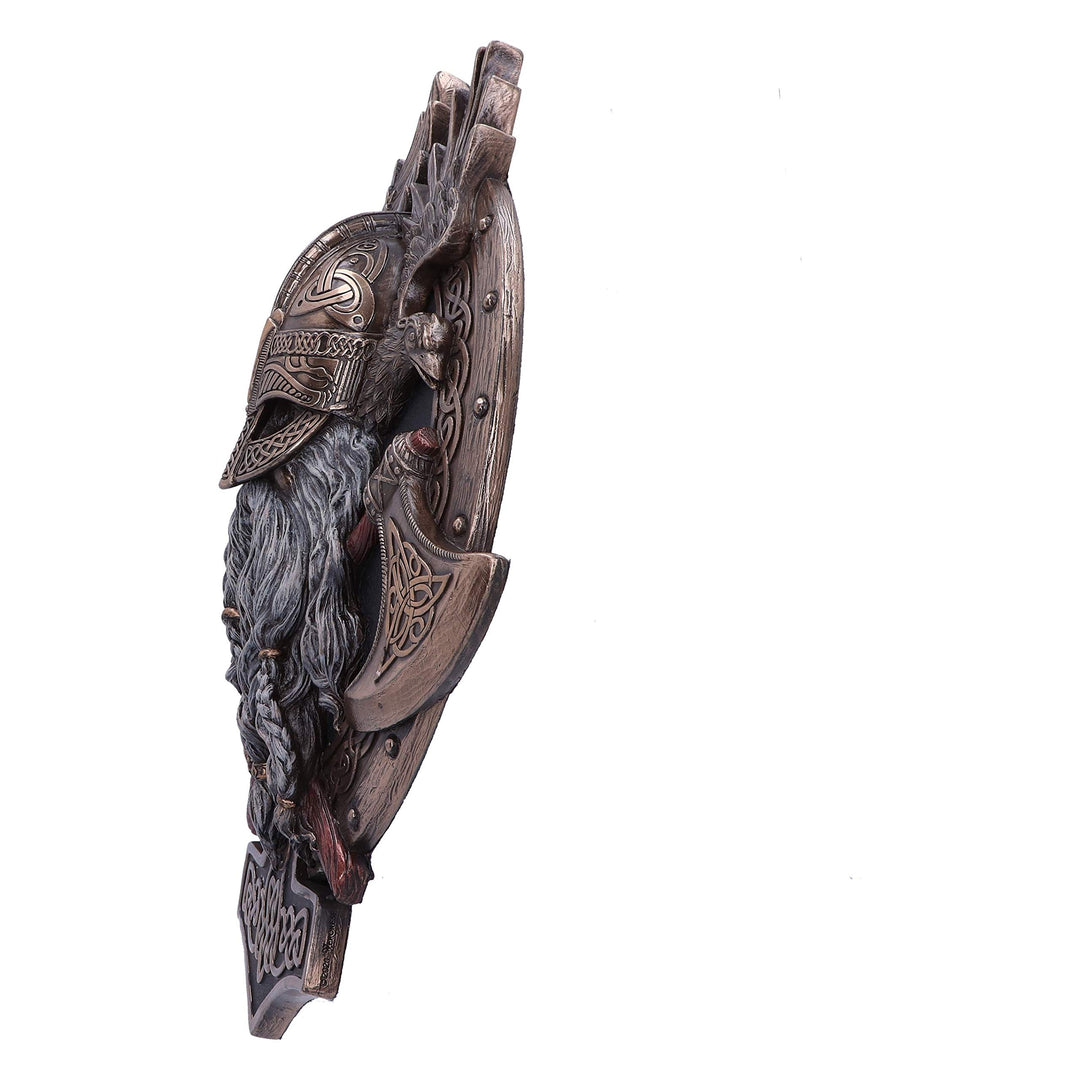 From alternative brand Nemesis Nows Premium giftware range, this Viking wall plaque is cast in the finest bronze resin before being expertly hand-painted. The face of a fierce Viking warrior is flanked by two large birds and a pair of patterned axes.