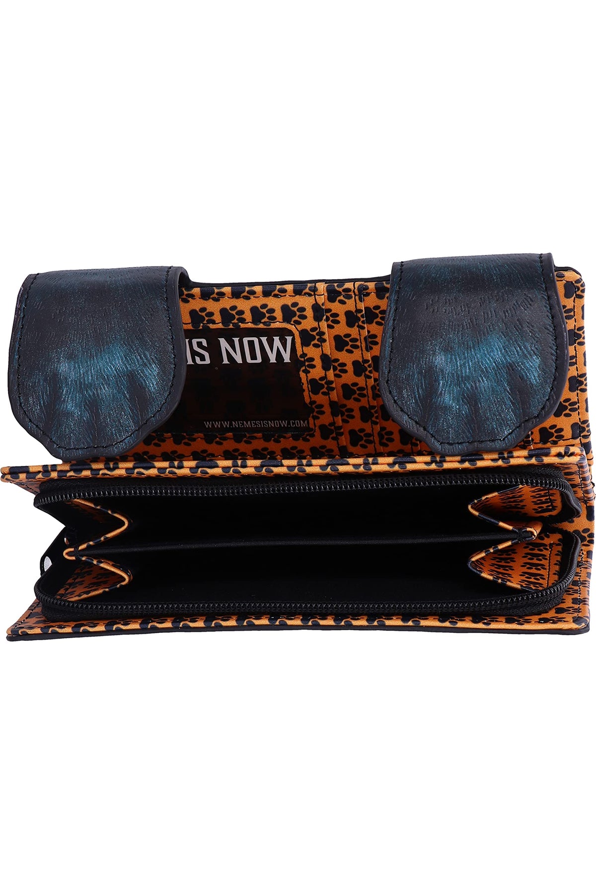 This alternative purse comes from the untameable imagination of internationally renowned wildlife and fantasy artist Lisa Parker. Staring straight ahead with piercing orange eyes, this cat is always on guard to protect your cards and money. The cat's paws act as a clasp to this beautifully detailed purse, adding a brilliant 3D effect to the piece. Once unfastened this purse has an orange material with a paw print pattern, alongside multiple slots available for holding both your cards, cash and coins!
