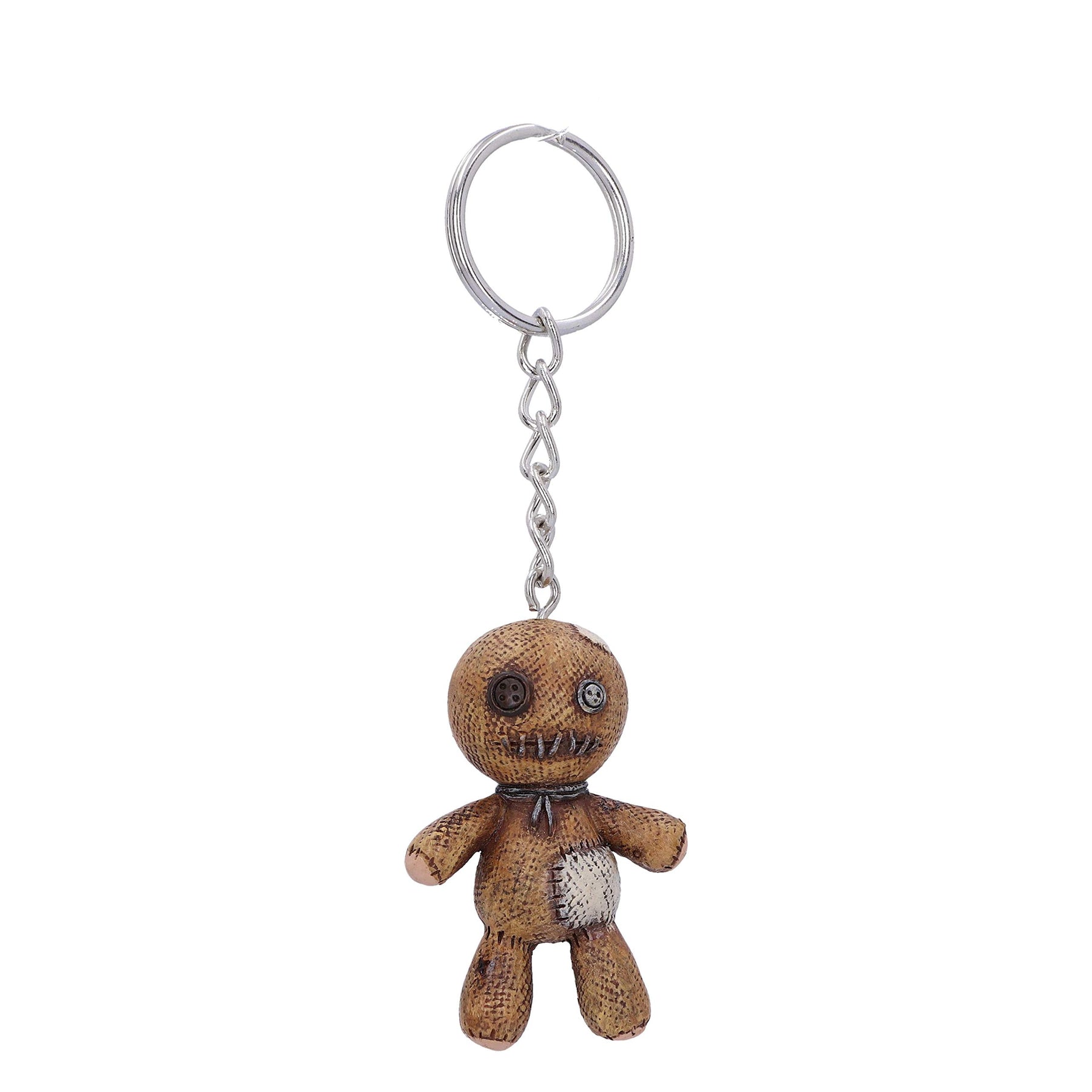 Cast in the finest resin, this teeny voodoo doll is perfect for cursing all those who cross you while you're out and about. With buttons for eyes, a stitched mouth and a body covered in patches, this keyring is the perfect addition to any occult enthusiasts collection.